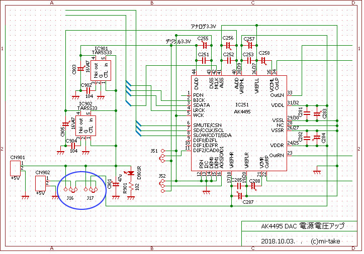 (4) AK4495 の 0dB時出力は、2.5V が 3.7V になります。