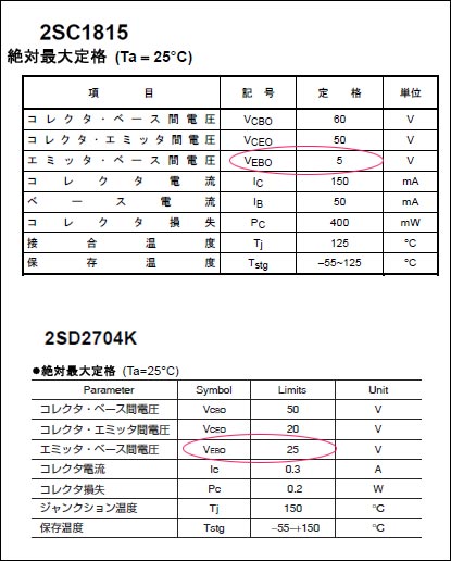 さて、次に muting TR のダイナミックレンジについて確認してみましょう。 先ほどのTRの 等価回路は 2本のダイオードを組み合わせたようなものでしたから 音声信号レベルや極性によって 波形クリップが生ずることは容易に想像できます。 下の波形例は、上記 muting TR 基本回路例 の場合ですが、mutingオフ時の マイナス側の Dレンジはなんと 0.5V 程度しかありません。 これでは、はっきり言って 「使い物」 になりません。 ![]() そこで、muting オフ時は、トランジスタのベースを 逆バイスすることにします。 下の波形は、-5vの バイアスをかけた場合ですが、ちょうど 5v分だけ 改善しているのが 確認出来ます。 ![]() つまり、muting TR 回路のダイナミックレンジを確保するためには ベース制御を マイナス側にまで 振ってあげれば良いことが分かると思います。 また、PCM1794等の DACの出力レベル 4.2Vrms(6.0Vpeak)にも 耐えられる ようにするためには バイアスを -7v 以上かけたい所です、 が ・ ・ ・ 一般のトランジスタの Vebo は、5V 程度ですので 定格オーバーになります。 さあ、どうしましょう ! ? ということで 出てくるのが、muting 専用トランジスタです。 Veboを 5v → 25v 、 コレクタ側をアースに使う逆接続でも hfeが高い 等 一般トランジスタを muting に使った場合の問題点を 解決していますので 心おきなく、±15Vのバイアスをかけて使えます。 2SC1815(一般用) と 2SD2704(Muting) のスペック例 ![]() なお、2SD2704 は 表面実装用ですが、ユニバーサル基板等で使いやすい TO92相当 のMuting用TR では 2SC2878 や 2SC3327 があります。 2SC3327 は若松通商に在庫があるようです。 (2SC3327は、2SC2878 と形状違いの 同等品です) 新mutimg基板で使う予定の 2SC2878 ![]() ![]() これらの muting専用TRを使う場合、コレクタを接地した逆接続にしなくても 十分に、Vsat(Ron) は低いようですが、 やっぱり逆にして使ってしまうのは 私だけじゃないようで、 他でも よく見かけます。 |